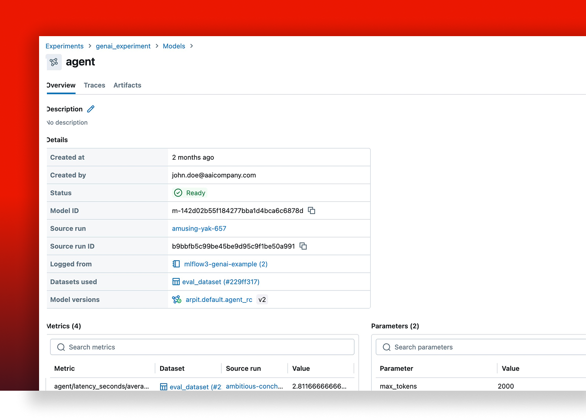 Track different versions of your GenAI applications using LoggedModels. Link evaluation results, traces, and prompt versions to specific application versions. Optionally package application code for deployment and compare versions to understand performance impacts.