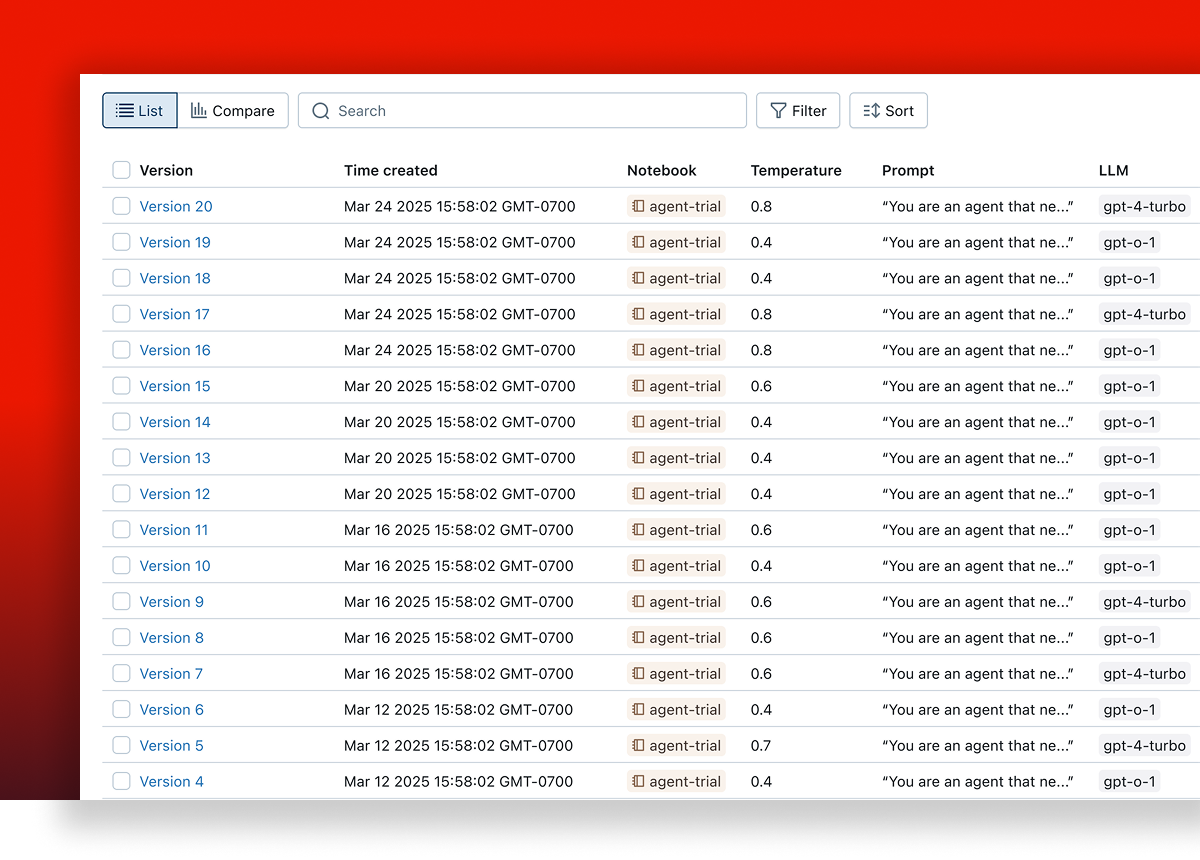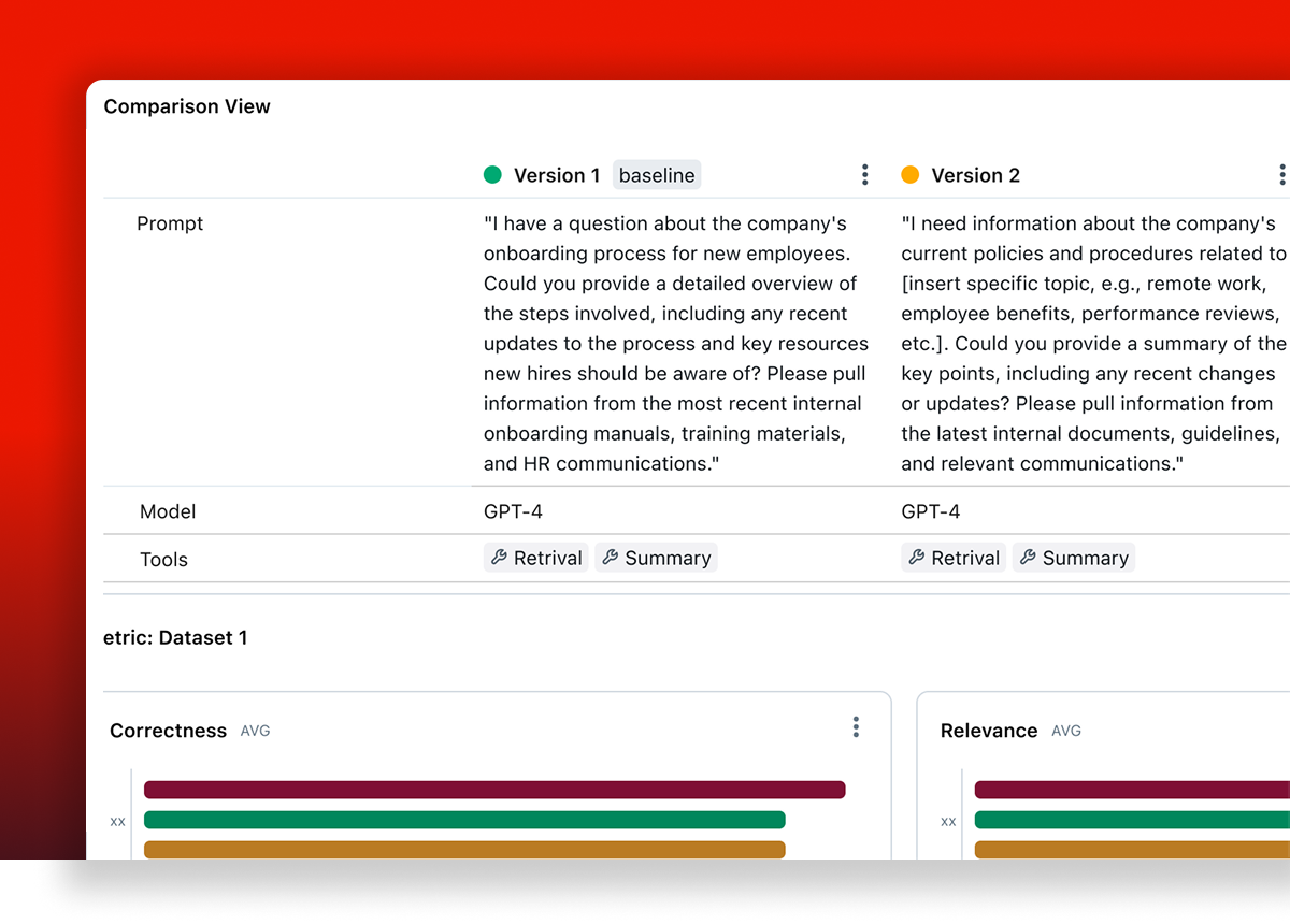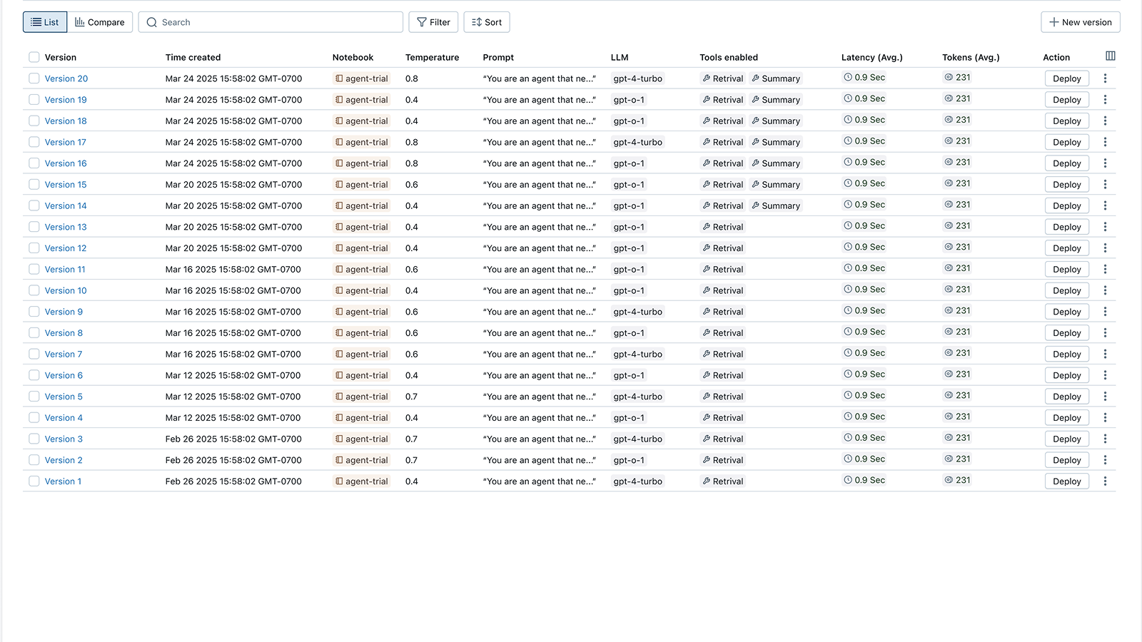 Track and compare different versions of GenAI applications to ensure quality and maintainability.